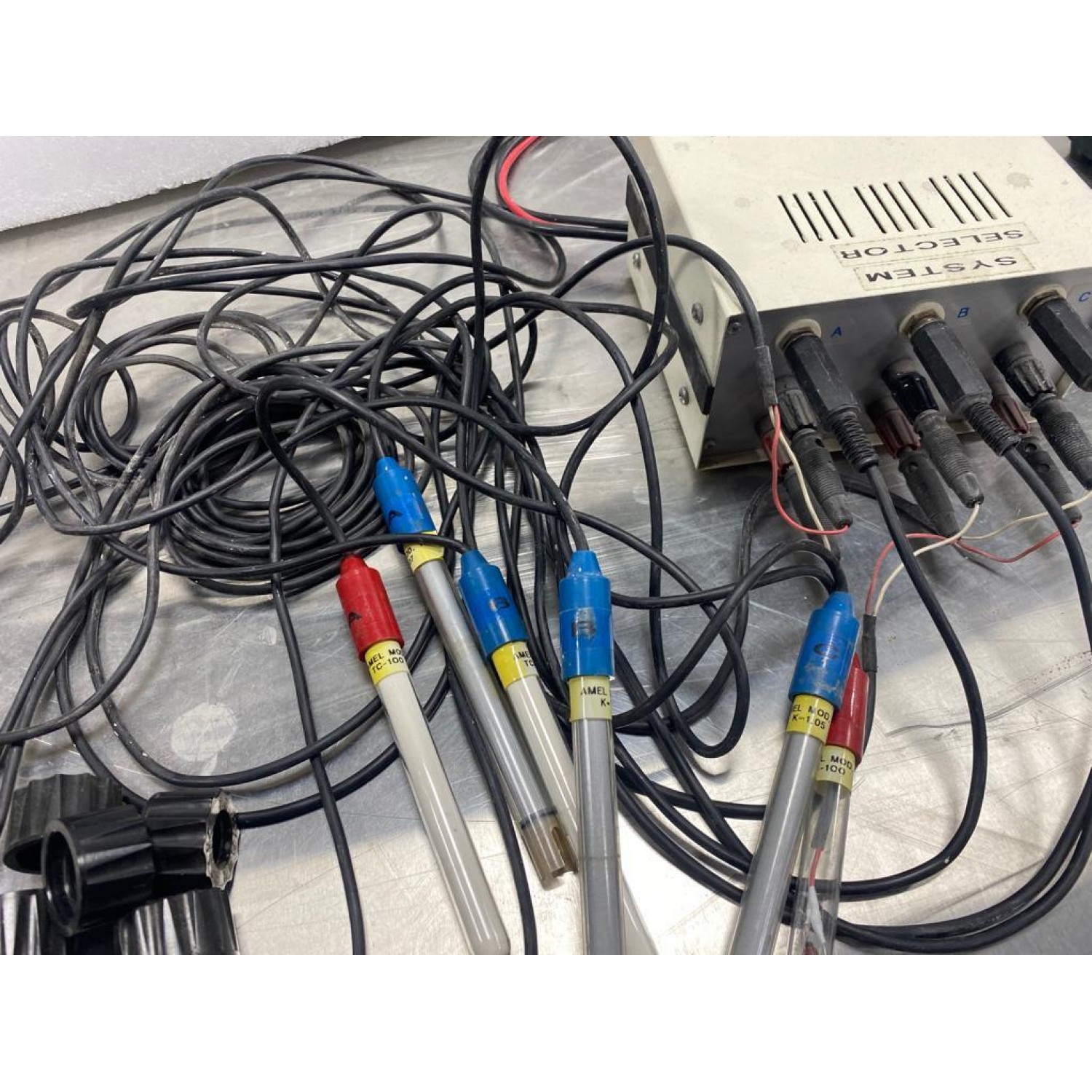 Барлығы жұмыс істейді, ол мәндерді көрсетеді және электрод сымдары ұзын. Жаттығу параметрлерінен жойылды. Бір термиялық электрод (С арнасында) сынған (фотосуретте көрінеді). Түрлі оқу және эксперименттік қондырғыларды құруға ыңғайлы.