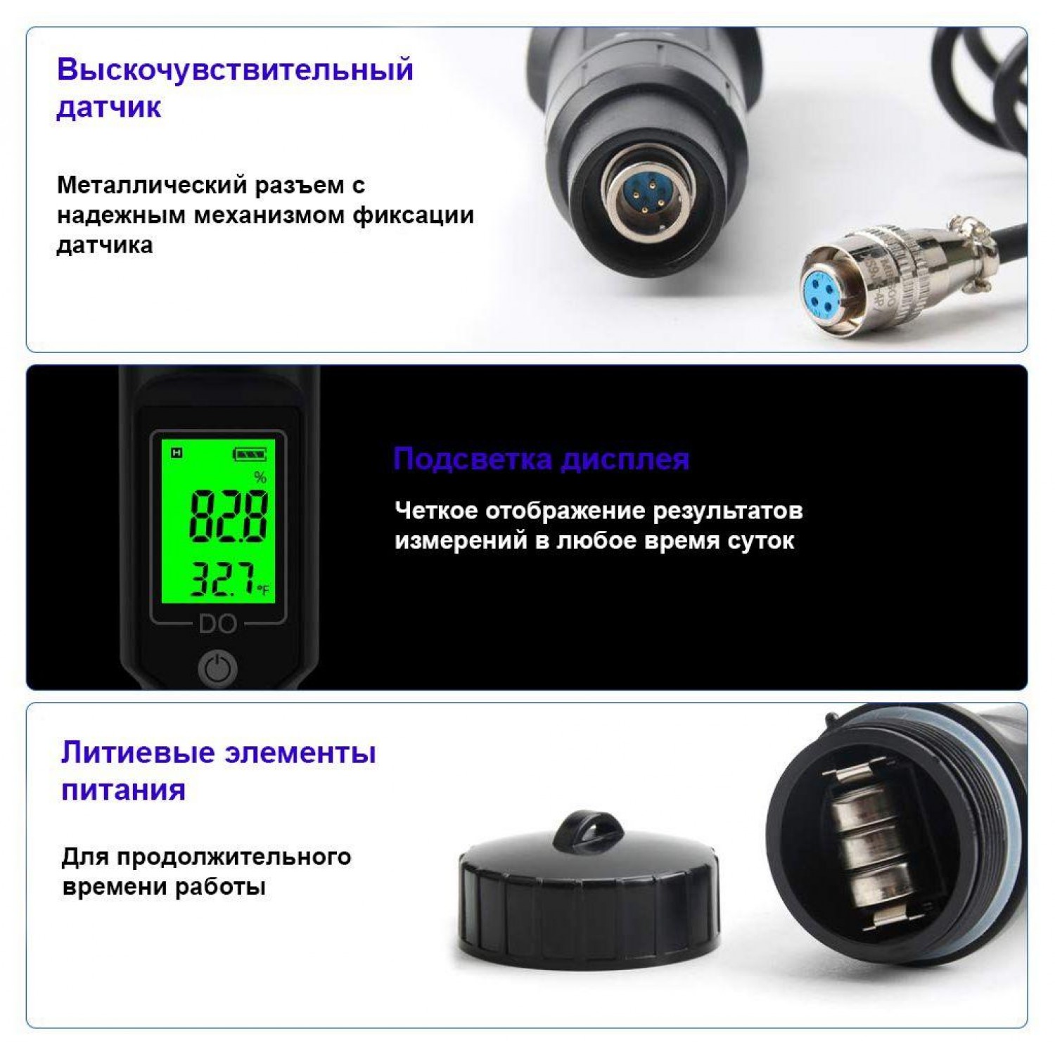 Құрылғы өлшеу нәтижелерін % еріту, мг/л – еріген оттегі үшін көрсете алады. Сондай-ақ құрылғыда ұзындығы 1 метрден асатын арнайы ұзартқыш кабель бар, бұл суға батыру әдісін қолдану кезінде өлшемдерді ыңғайлы етеді. Құрылғының ерекшелігі - қалыпты ауаны пайдалану арқылы оңай калибрлеу және IP57 сәйкес толық гидрооқшаулау.
