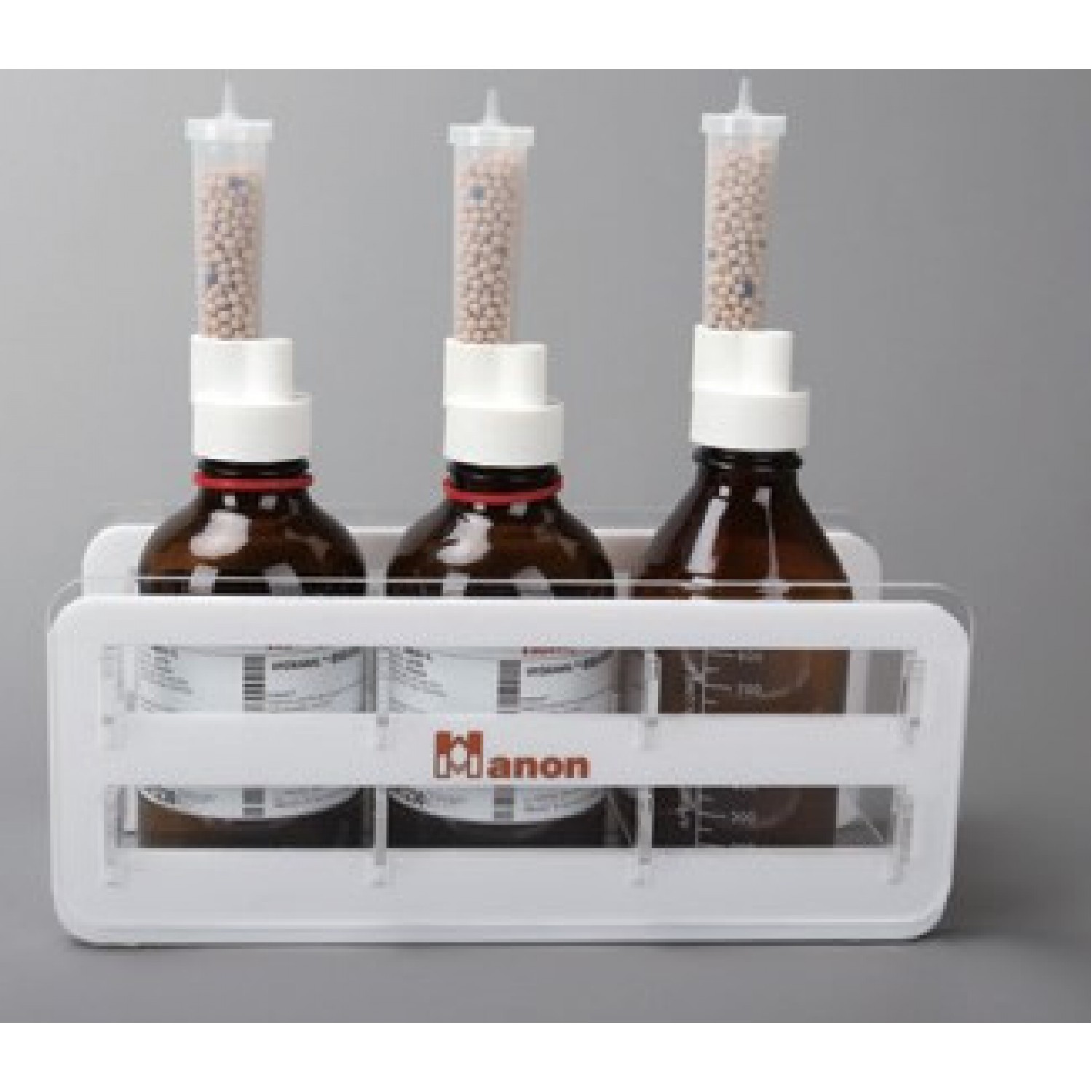 v Реагент бөтелкелерінің құлап кетуіне жол бермейтін реагент бөтелкесінің сөресі. Оны еркін біріктіруге болады және 250 мл, 500 мл және 1000 мл бөтелкелермен үйлесімді.