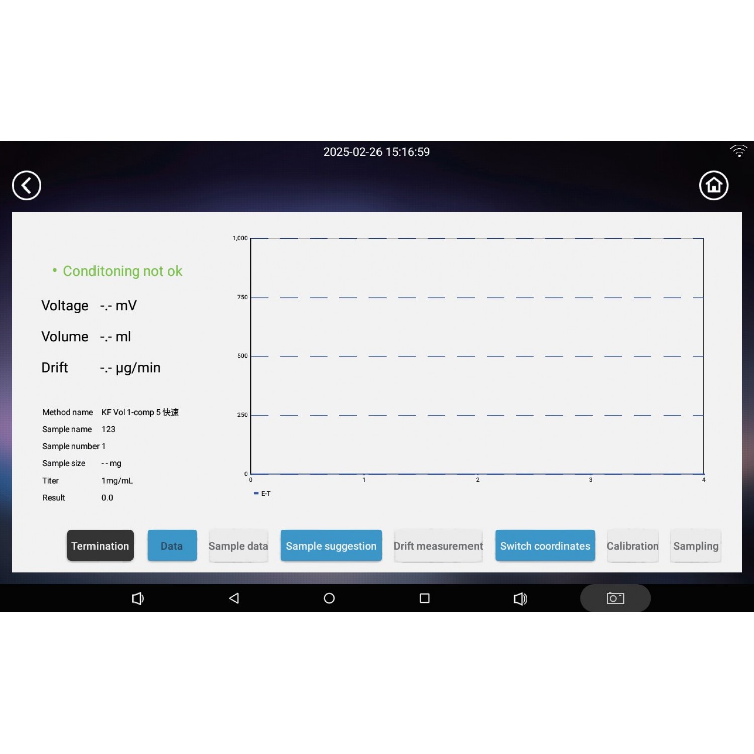 Үлгіні сынау кезінде құрал сынақ қисықтарын, параметрлерін және талдау нәтижелерін нақты уақытта көрсетеді, бұл пайдаланушыларға нақты уақытта бүкіл титрлеу процесін бақылауға мүмкіндік береді.