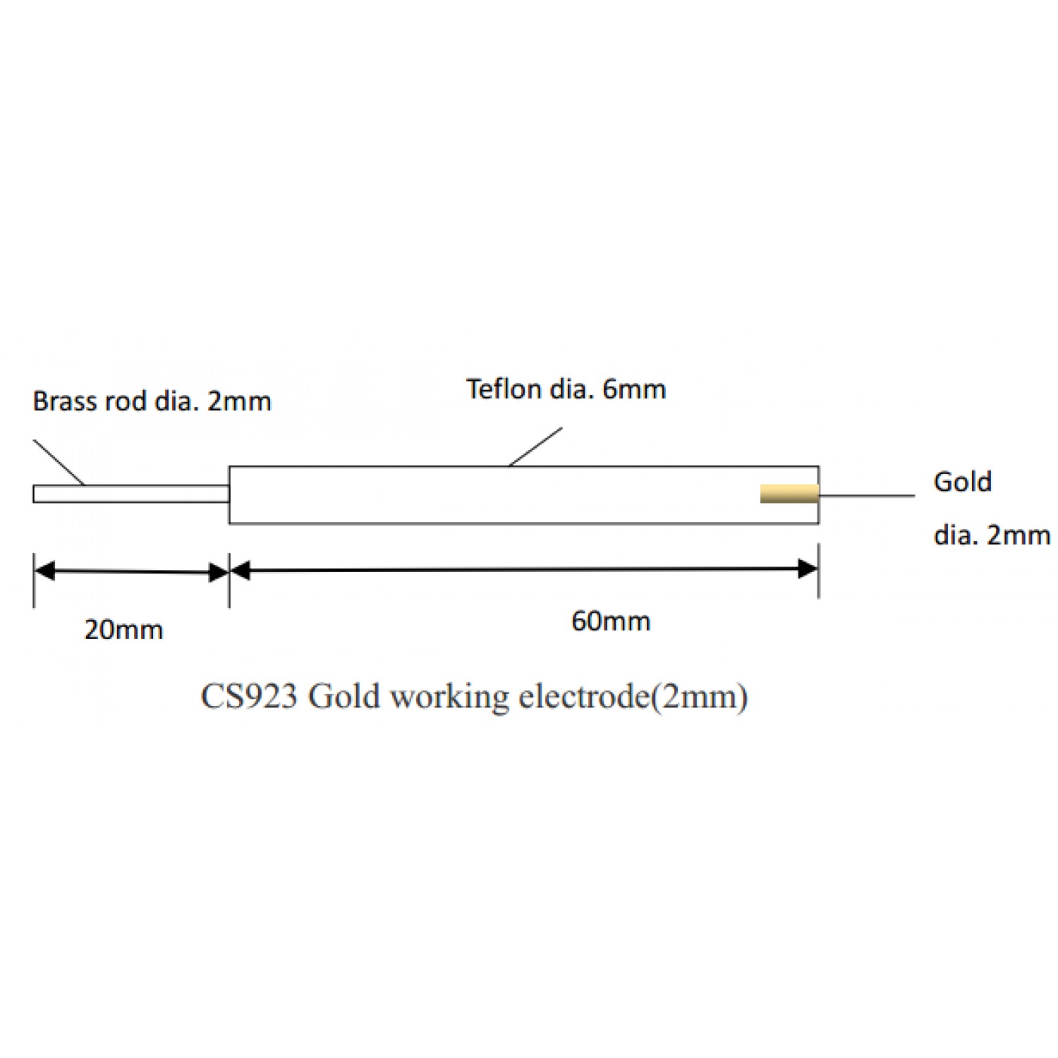 CS сериялы бір арналы потенциостат/Гальваностат үшін CS923 алтын өңдеу электроды (2 мм)