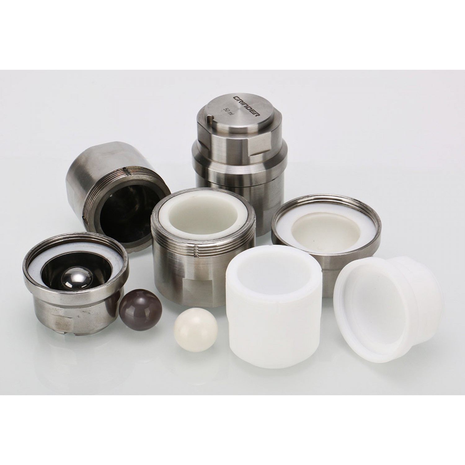 Тефлоннан, полиоксиметиленнен және поликарбонаттан жасалған ұнтақтағыштардан жасалған шағын ыдыстар үлгілердің аз мөлшерін криогенді және кәдімгі ұнтақтау үшін пайдаланылады.