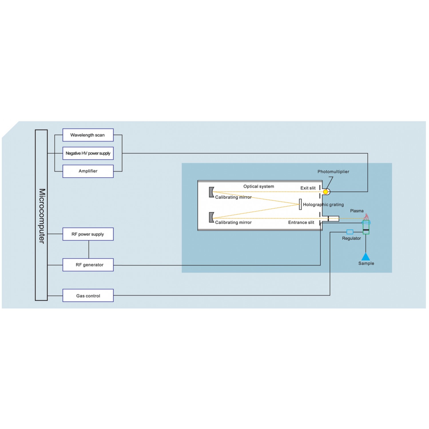 Жоғары жиілікті модуль индуктивті кері байланысы бар өздігінен тербелетін тізбекті пайдаланып, жоғары тұрақты плазмалық алауды қоздырады. Схема коаксиалды кабельді беруді пайдаланады, сәйкес реттеледі және тұйық циклді, автоматты кері байланысты басқаруды жүзеге асырады. Генератордың бұл түрі өнеркәсіптік аргонды пайдалана алады, бұл спектрометрдің алауын қоздырып қана қоймайды, сонымен қатар жоғары таза аргонды пайдаланумен салыстырғанда ақшаны үнемдейді.