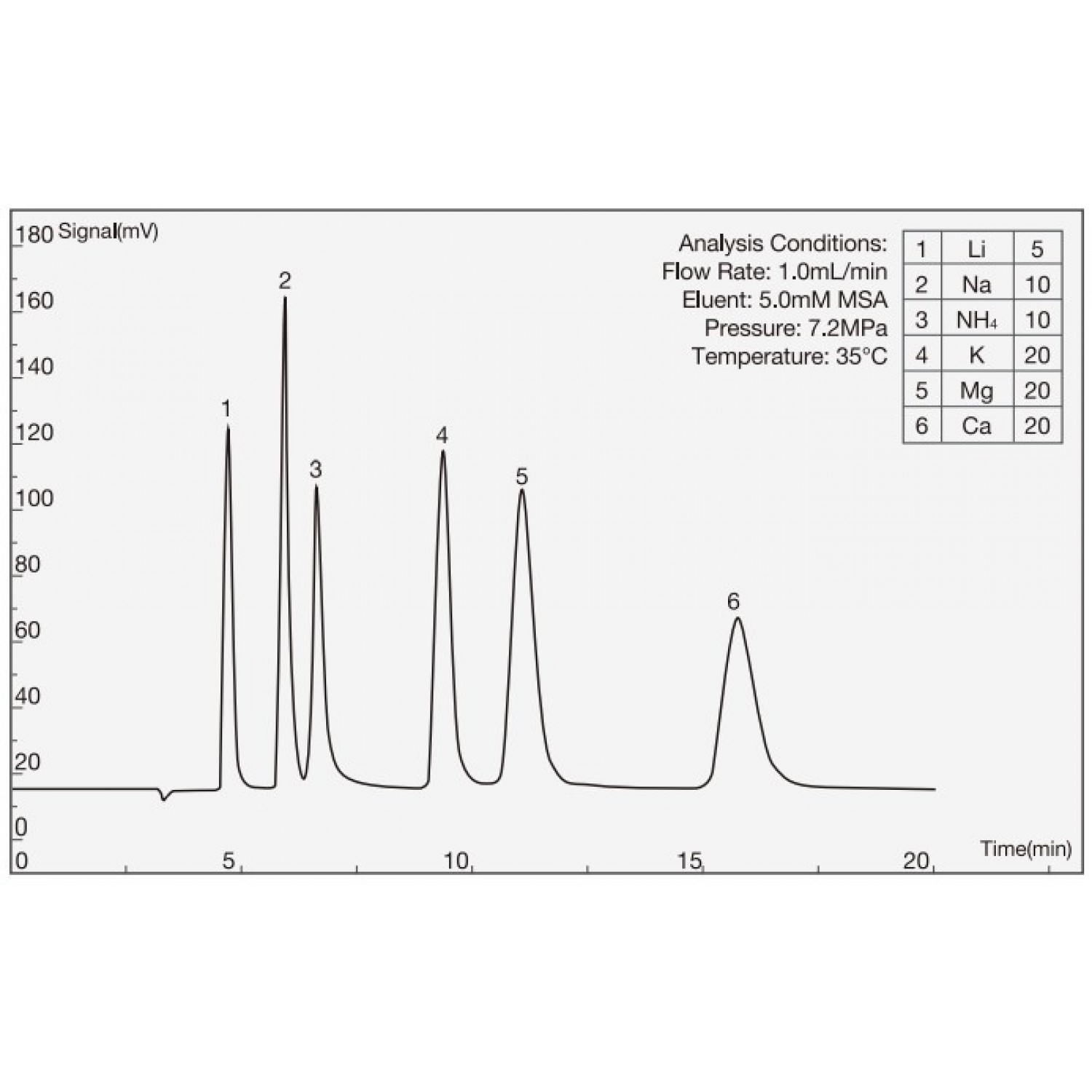 Көп функционалды катион бағанасы, метансульфон қышқылын тасымалдаушыны пайдаланады, бір уақытта алты негізгі катионды талдай алады: литий, натрий, аммоний, калий, магний және кальций (Li, Na, NH4, K, Mg, Ca). Төмен магний және кальций қалдықтары, 100% ацетонға төзімді. Қоршаған ортаны бақылау, тамақ өнеркәсібі мониторингі және т.б. үшін оңтайлы.