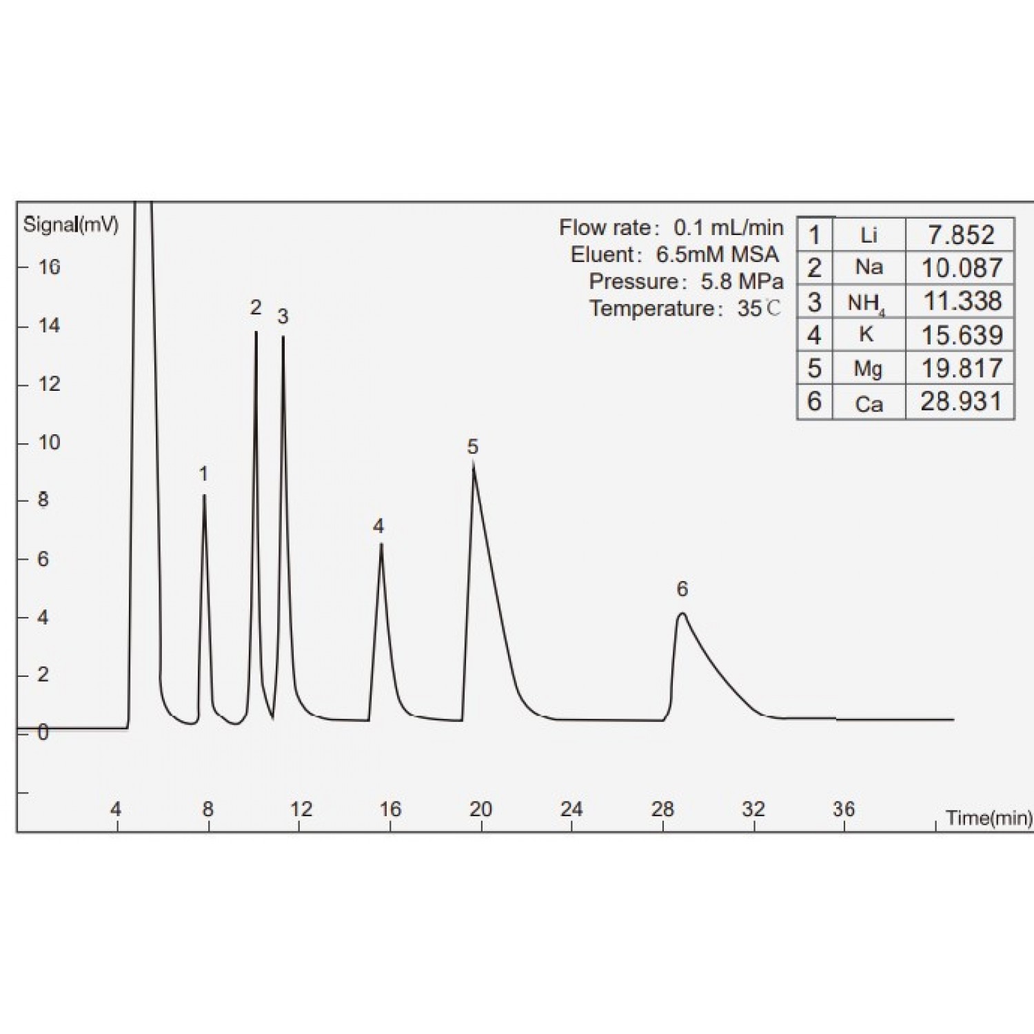 Әлсіз қышқыл катион бағанасы, метансульфон қышқылының тасымалдаушысын пайдаланады, бір уақытта 6 негізгі катионды талдай алады: литий, натрий, аммоний, калий, магний және кальций (Li, Na, NH4, K, Mg, Ca).