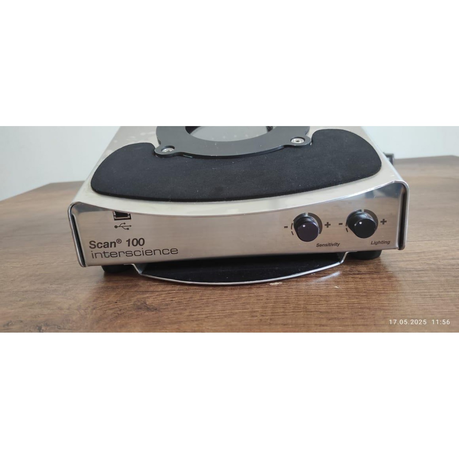 Scan 100 Жартылай автоматты колония есептегіші; колониялар кез келген маркермен немесе фломастермен белгіленеді; әрбір контакт дыбыстық сигналмен сүйемелденеді және экранда колониялар саны көрсетіледі.
