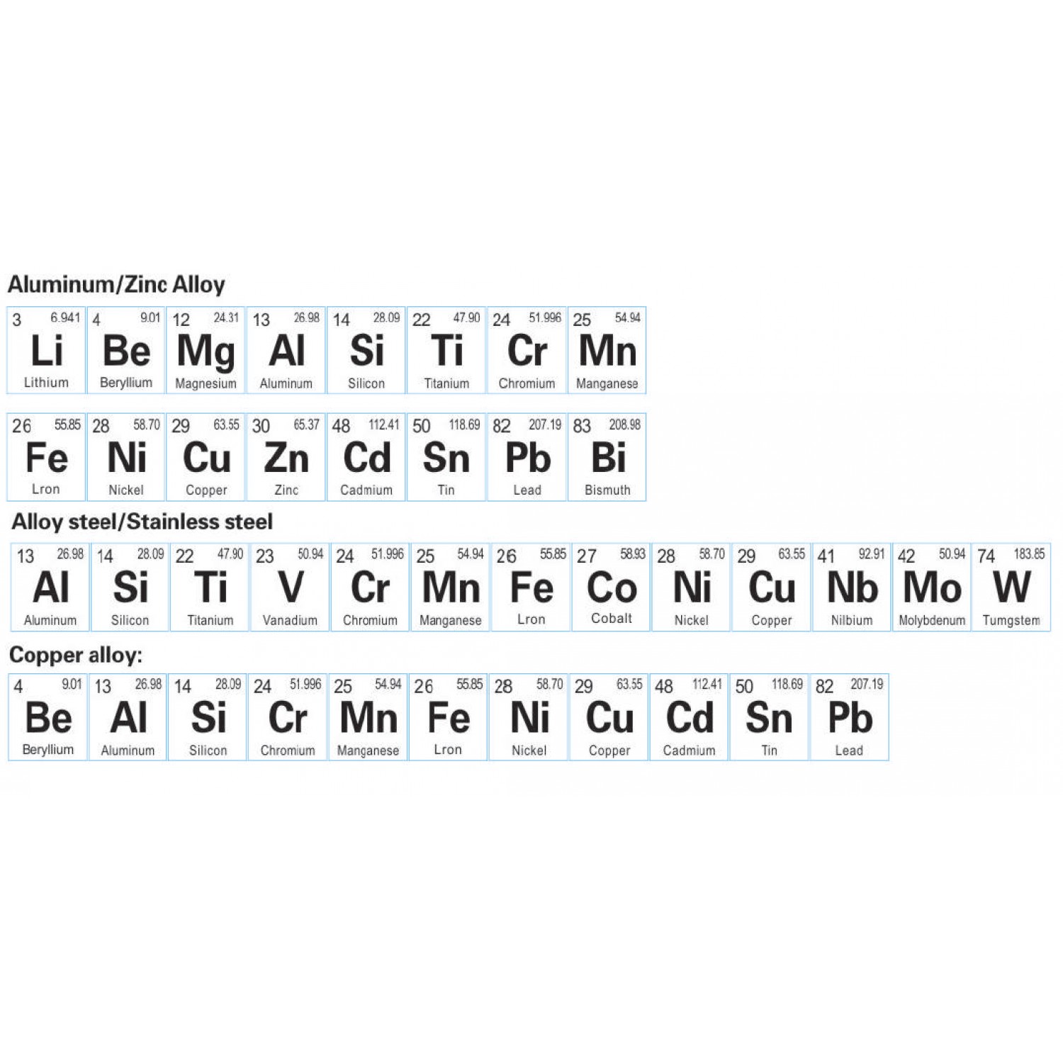 Анализатор 304, 316, 316Fe, 321 сияқты тот баспайтын болаттың барлық түрлерін және 6061 және 6063 сияқты алюминий қорытпаларын жылдам анықтай алады. Сондай-ақ шикізат сапасының стандарттарға сәйкестігін анықтау үшін алюминий мен мырыш қорытпасы шикізатының Si және Cu мазмұнын анықтай алады.