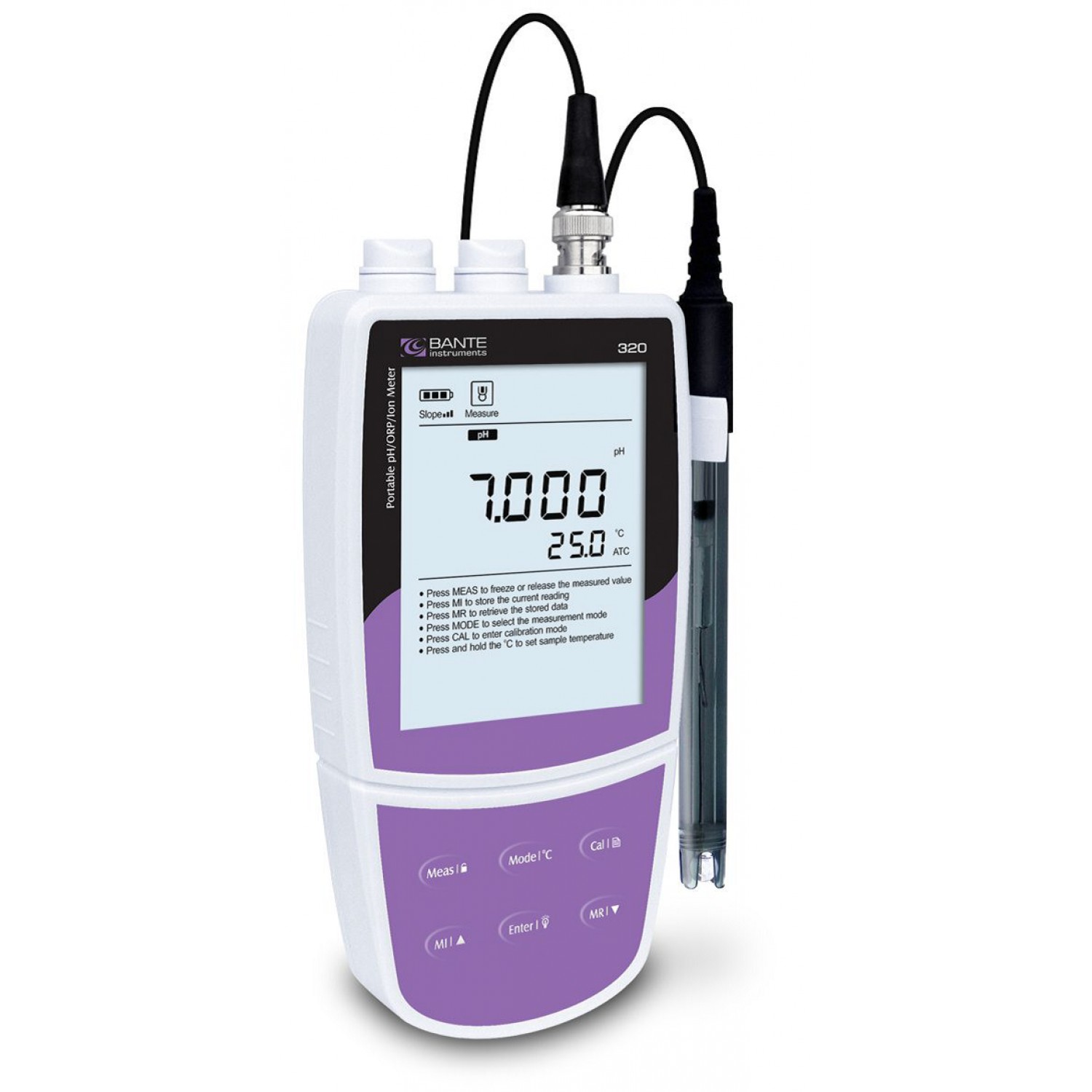 320: рН электроды, температура сенсоры, рН буферінің ерітінділері (4.01/7.00/10.01) және тасымалдау қорабы.