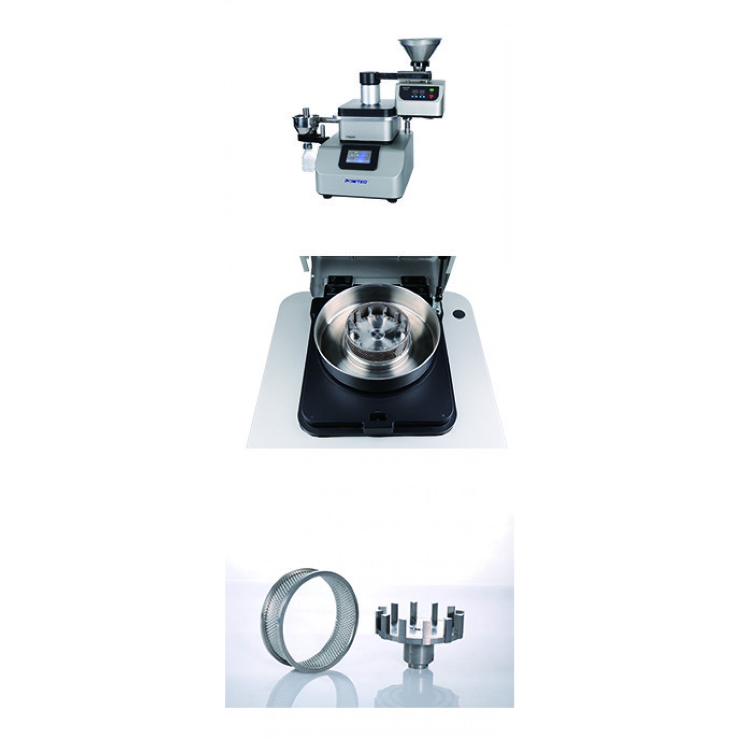 Көбінесе зертханаға жеткізілетін сынама көлемі аналитикалық құралдардағы талдау үшін қажетті көлемнен айтарлықтай үлкен болады. Сонымен қатар, үлкен көлемдегі материалды ұнтақтау және гомогенизациялау үнемді емес. Бөлшектердің өлшемі және химиялық құрамы баламалы үлкен көлемді үлгінің кішкене бөлігін бөлу үшін айналмалы үлгі бөлгіштері RSD200 пайдаланылады. Бұл машина үлгіні бөлшектердің өлшеміне, химиялық құрамына және физикалық қасиеттеріне қарай сегіз баламалы бөлікке бөледі. Үлгі бөлгішке VF200 діріл беру құрылғысы () және жинақтағы VF200 діріл беру құрылғысы () арқылы беріледі.