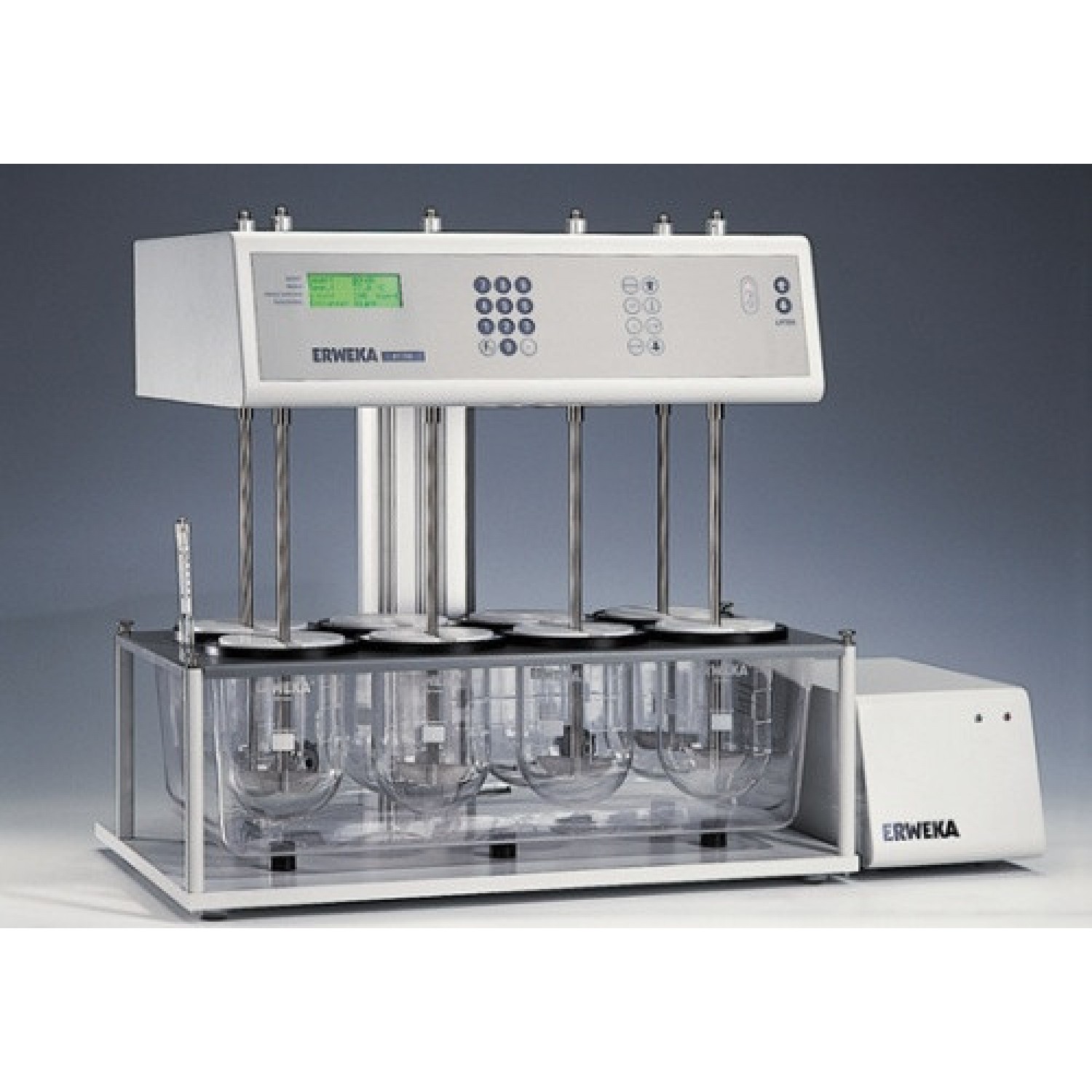 ![]() | Құрылғылардың бұл сериясы ең қарапайым, бірақ жоғары сапалы өндіріспен мақтанады. Бұл сериядағы аспаптарда 8 сынақ ыдысы бар және 6, 7 немесе 8 айналмалы сынақ элементтерімен (қалақ, себет және т.б.) жабдықталуы мүмкін. Олар тек жоғары басы бар нұсқада (басқару блогы жоғарғы жағында орналасқан) қол жетімді. Қарапайымдылығына қарамастан, DT 600 сериялы аспаптар, жоғары деңгейлі нұсқалар сияқты, дірілді азайтатын сыртқы ағынды термостатпен және бір модульді ПЭТ су ваннасымен жабдықталған. Сынақ ыдыстарынан ортаның булануын азайту үшін соңғылары арнайы қақпақтармен жабдықталған, ал ыдыстарда автоматты орталықтандыру бар. Пайдалануға ыңғайлы болу үшін пайдаланушы арнайы мәзірді пайдаланып қолмен іріктеу үшін еске салу кестесін (дыбысты сигналдары бар) жасай алады. |