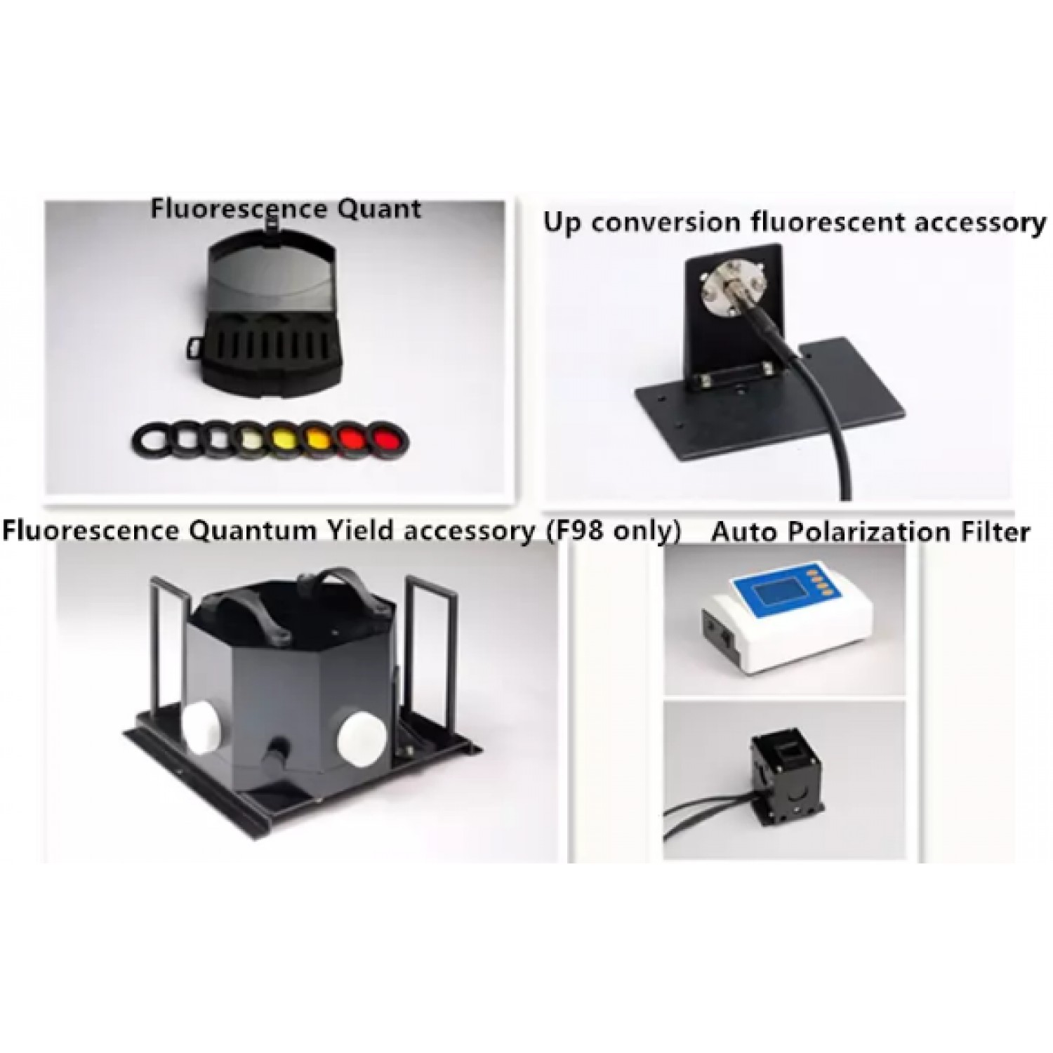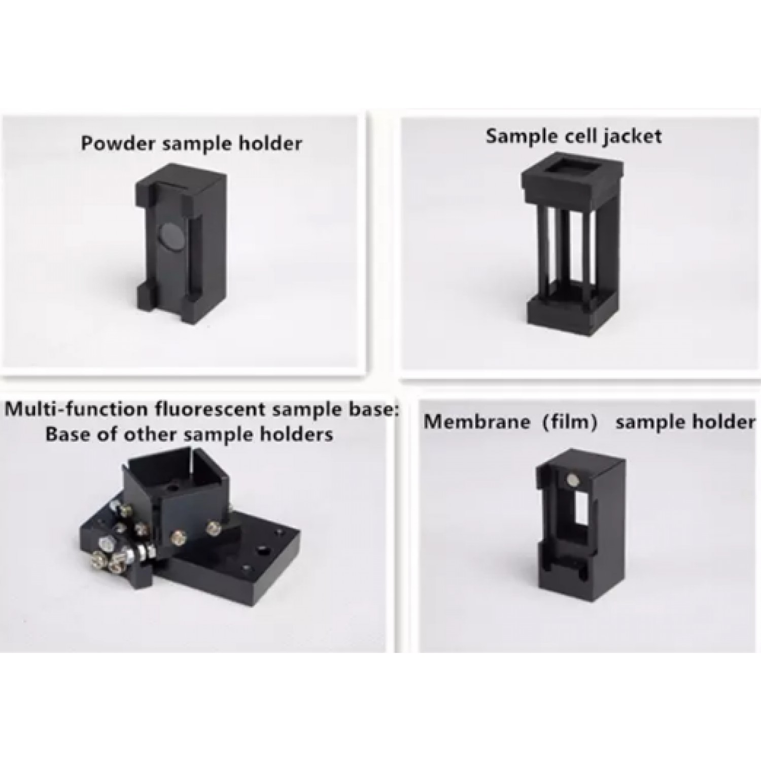 : Әртүрлі өлшемдерге арналған қосымша керек-жарақтар, соның ішінде бір тесігі бар ұяшық ұстағышы, әртүрлі функцияларға арналған флуоресценция үлгі ұстағышы, 200 мкл микро масштабты центрифуга түтігі және микро масштабты капиллярлық үлгі ұстағыш, үлгіні енгізуге арналған жартылай автоматтандырылған аксессуар, үлгі қосалқы мембрана, үлгі керек-жарағы ұнтағы, үлгі керек-жарағы JTAGX1 т.б.