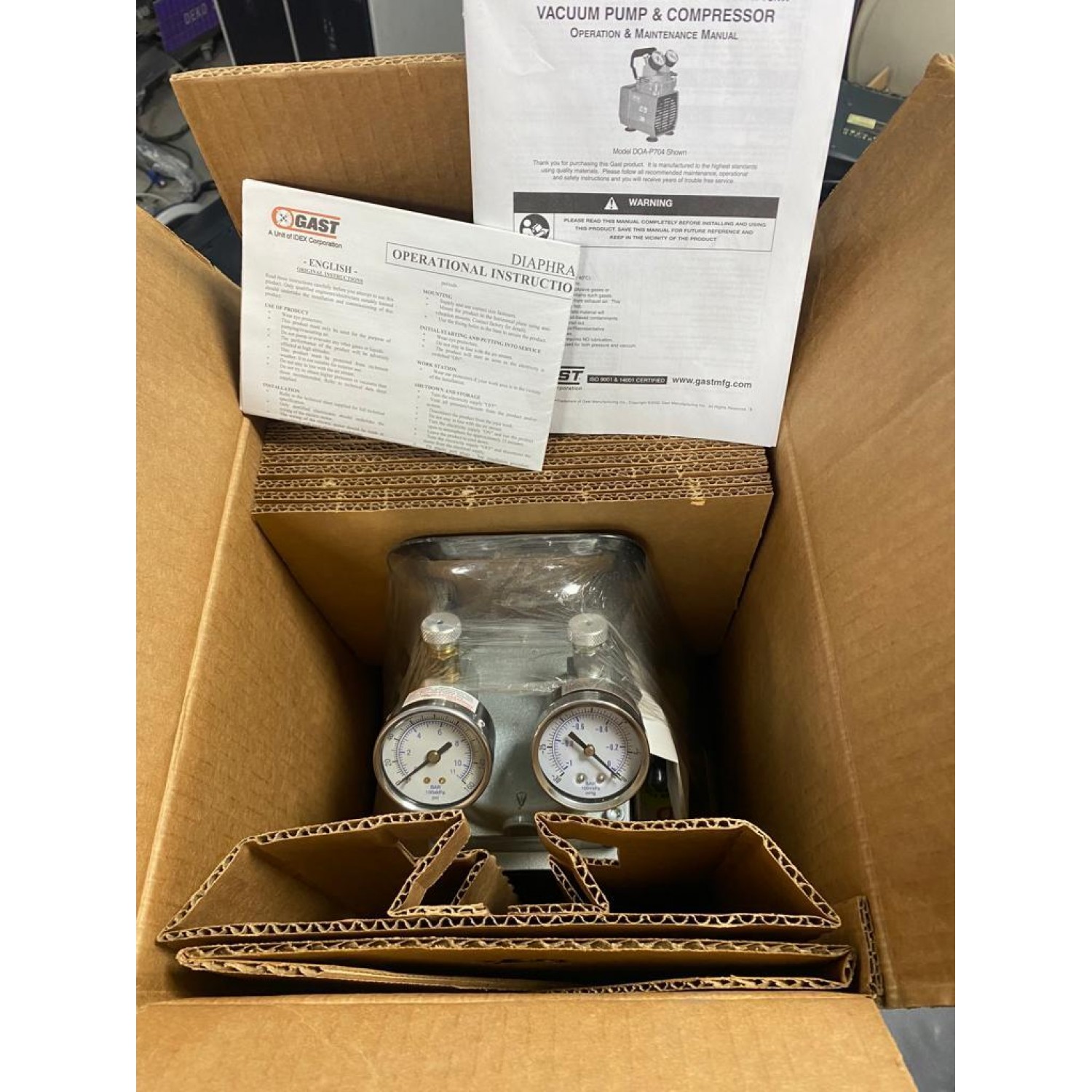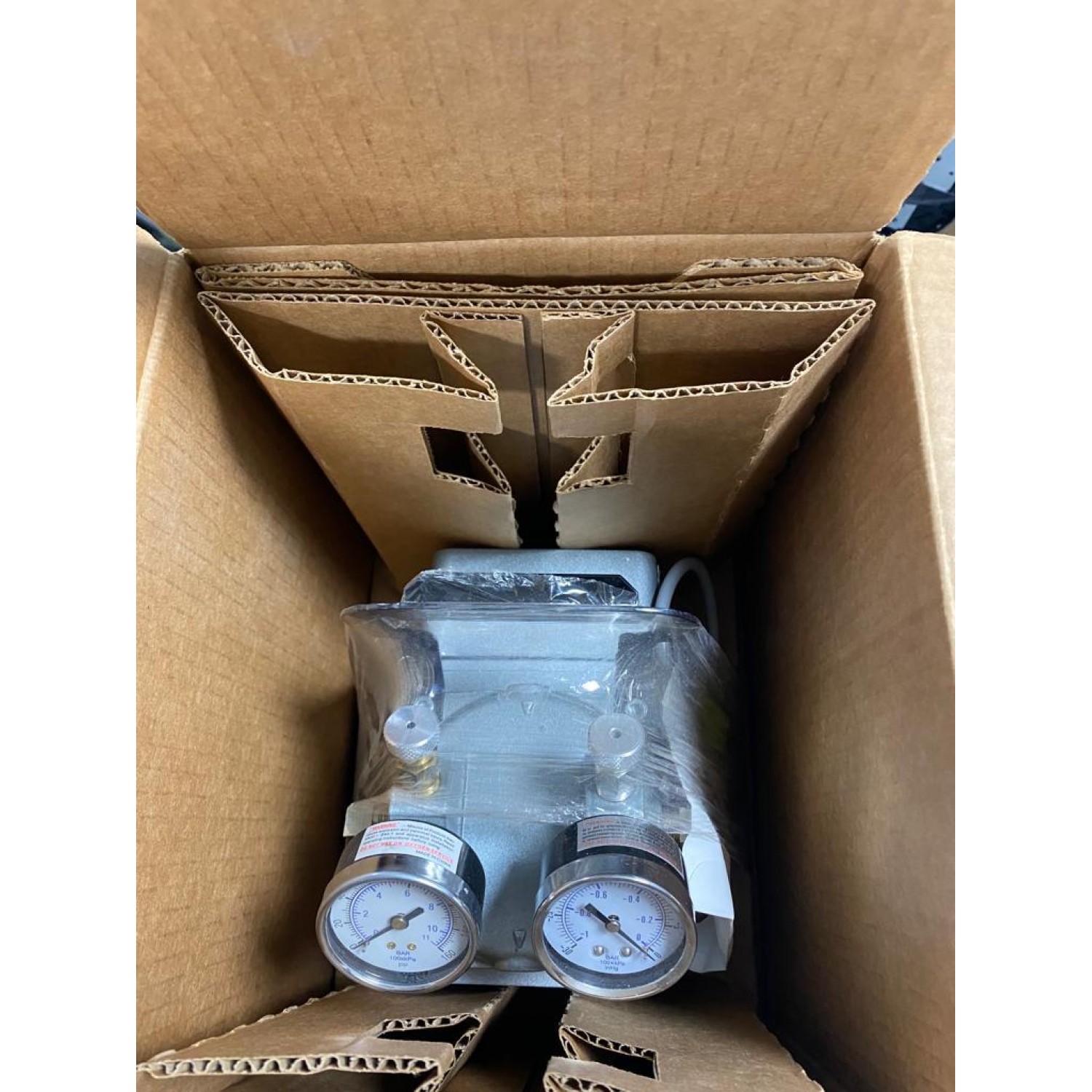 Суланған бөлшектер 304 Тот баспайтын болат, алюминий, Nordel®, Nomex® Бос ауа көлемі (CFM)1 Бос ауа көлемі (л/мин)28,3 Бос ауа көлемі (л/сағ)1698 Максималды ағын (CFM)0,99 Максималды ағын (л/мин)28,3 Максималды қысым (Л/мин)28,3 Максималды қысым (64B) Максималды вакуум (Hg)24 Максималды вакуум (мбар)200,7 Максималды вакуум (мм.сын.бағ.)150,4 Максималды вакуум (Торр)150,4 Шу деңгейі (дБ)68 Порттың өлшемі1/4" NPT(F), 3/8" Шланг саптамасы қысымды өлшегіштердегі (°Макс1)ең жоғары температура0 (°C)38Жұмыс цикліҮздіксізҚуат (VAC)220Қуат (ампер)2,2/1,9қуат (Гц)50Қозғалтқыш түрі тұрақты бөлінген конденсаторБақылаулары1Биіктігі (дюйм)10,25Ұзындығы (дюйм)7,625Биіктігі (см)26,04Ұзындығы (7,20 мм)Ұзындығы (7,24 мм) (мм)193,7Мотор HP1/8СипаттамасыЖоғары өнімділік вакуумдық сорғы, өлшегіш/реттелетін 1,0 cfm/24 дюйм Hg-60psi/22